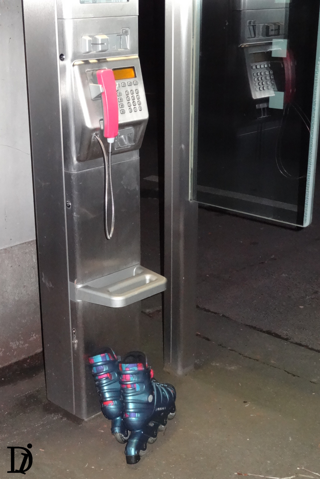 - Dieser seltsame Anblick bot sich mir dann auf dem Heimweg um 22:15… Jemand Ideen, wie man seine Inliner an einer Telefonzelle vergessen kann?